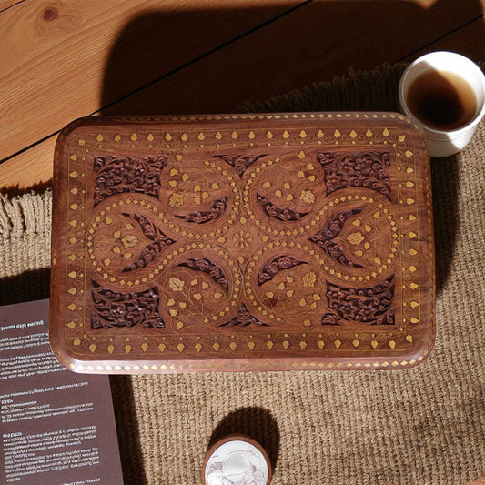 SacredFig Handcrafted Decorative Table| Coffee Table in Sheesham Wood | Intricate Brass Inlay Work (18x12 in)
