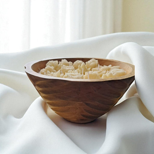 Stunning Floral Soy & Coconut Wax Scented Candle, XL Wooden Bowl by SacredFig - 8x8x4 in