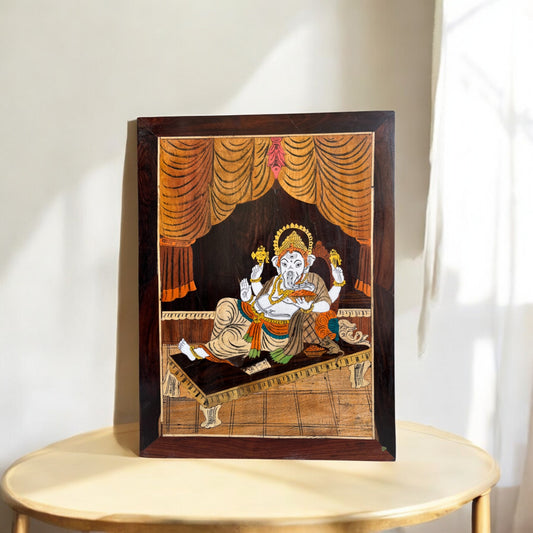 SacredFig Vinayaka On Lotus Base | 8 inches | Hand Carved Wooden Lord Ganesha Idol For Home & Temple Decor