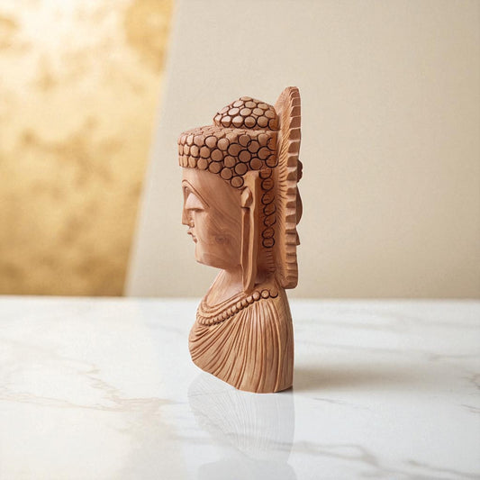 SacredFig Sacred Presence Buddha Head – 6 Inch | Handcrafted Wooden Idol for Spiritual & Home Decor