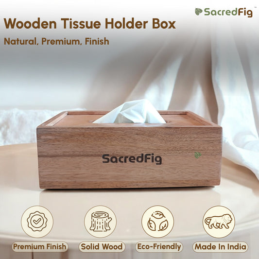 SacredFig Wooden Tissue Holder Box | Napkin Holder |Premium Minimalistic Design | Ideal for Office & Home use|9×5 in