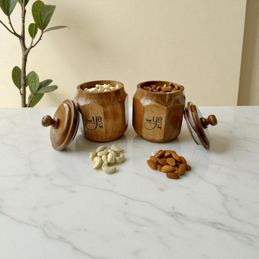 SacredFig Acacia Wooden Jar Set – Set of 2 | Airtight Lid | Handcrafted Storage for Dry Fruits, Snacks & Treats
