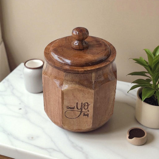 SacredFig Wooden Jar – 6 Inch | Airtight Lid | Treat Yourself Edition | Storage for Cookies & Snacks