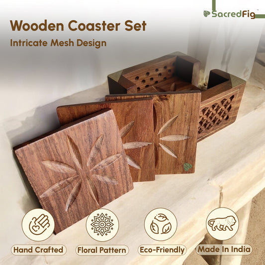 Regular price From Rs. 399.00Regular priceUnit price / perRs. 799.00Sale price From Rs. 399.00SacredFig Wooden Coasters | Natural, Rustic Wood Finish | 10 cm (d), set of 4