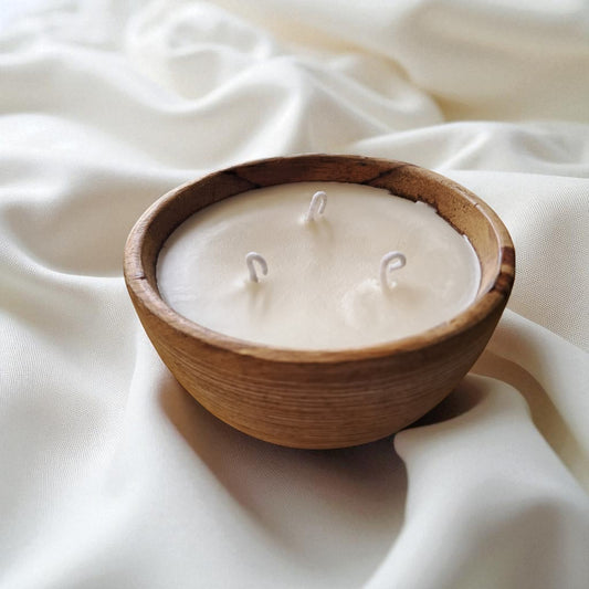 Premium 3-wick Soy & Coconut Wax Scented Candle, Wooden Bowl by SacredFig - 5x5x3 in