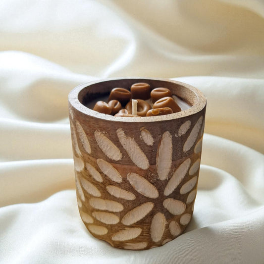Coffee Beans themed Soy & Coconut Wax Scented Candle, Hammered Wooden Jar by SacredFig - 3.2x3.2x3 in