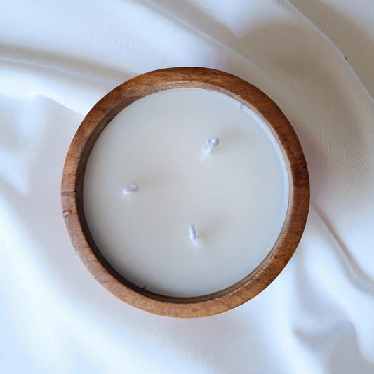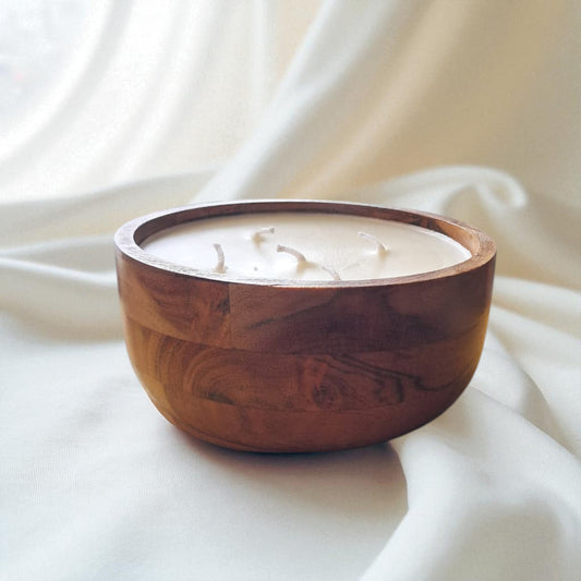 Premium Soy & Coconut Wax Scented Candle, Acacia Wood Bowl by SacredFig - 6x6x2 in