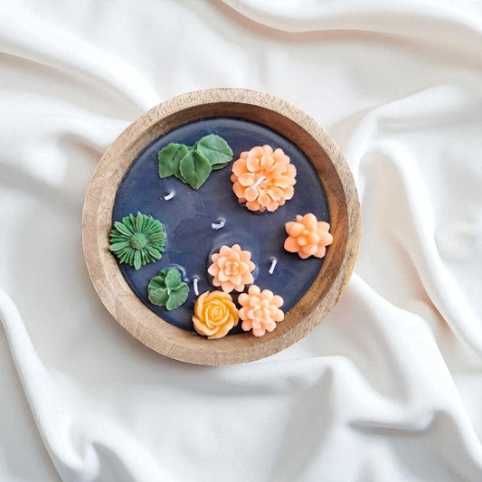 Stunning Floral Soy & Coconut Wax Scented Candle, XL Wooden Bowl by SacredFig - 8x8x4 in