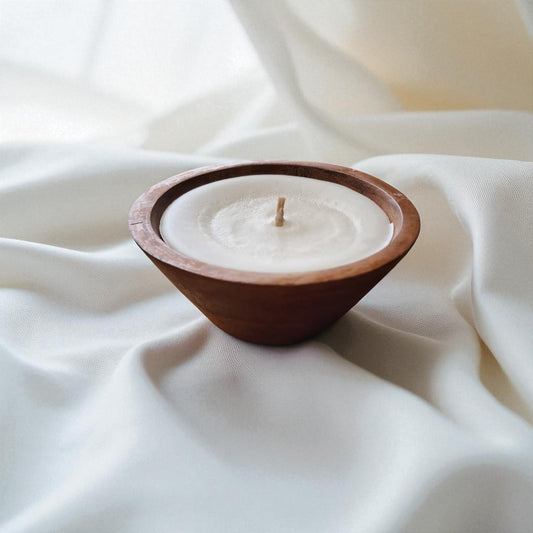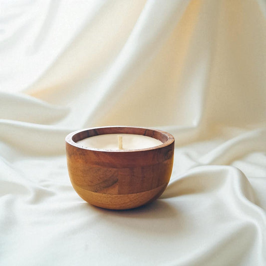 Premium Soy & Coconut Wax Scented Candle, Acacia Wood Bowl by SacredFig - 4x4x2 in