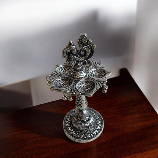 Divine Swastik Diya Holder with Peacock on top | 7 in
