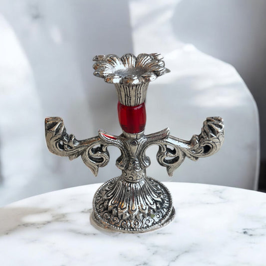 Regal Silver Candle Holder with Striking Red Detailing | Perfect for Elegant Decor| 4 in