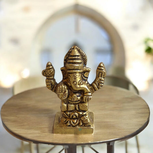 SacredFig Lord Ganesha Idol – 5 Inch | Pure Brass Statue with Premium Finish | Handcrafted Spiritual Decor