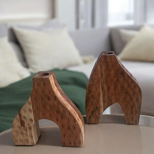 Set of 2 Wooden Vases – Handcrafted Decorative Accents for Home | Large 8×6in | Small 7×7in