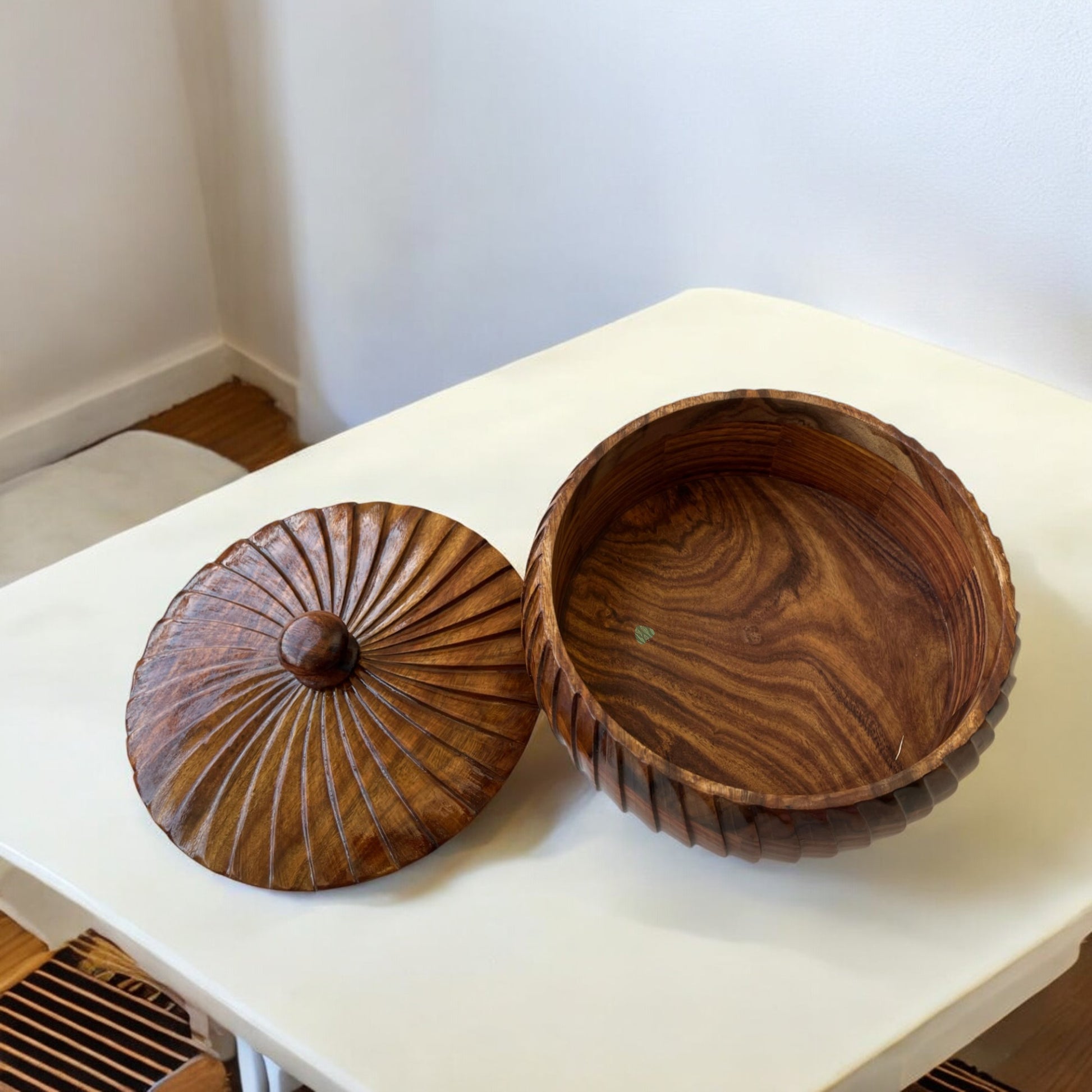SacredFig Sheesham Wood Chapati Box – 20 cm | Handcrafted Roti Hot Case with Lid | Elegant Kitchen & Dining Storage