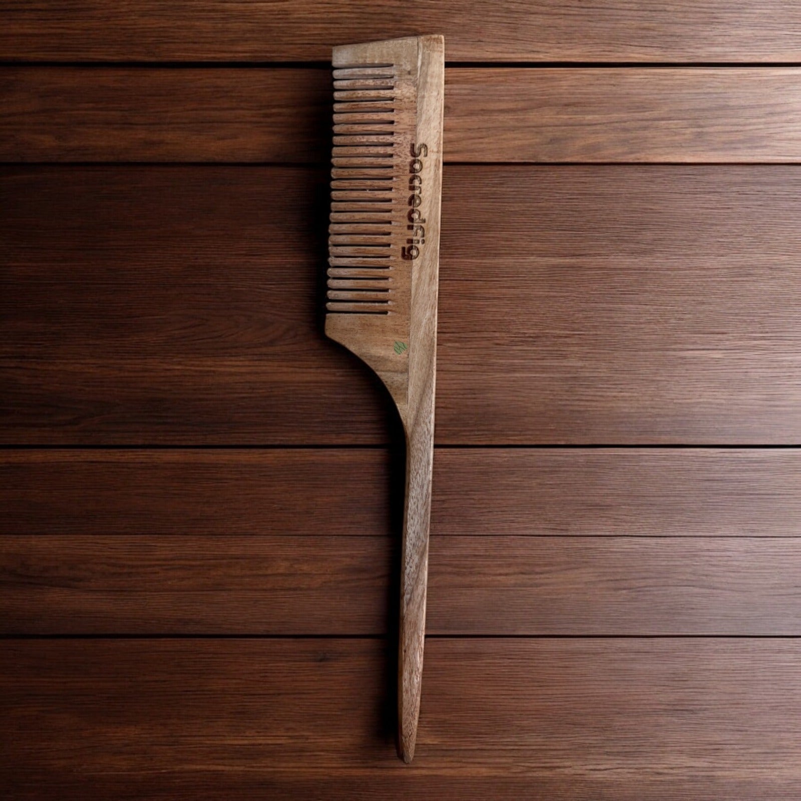 SacredFig Neem Wood Hair Comb – Rat Tail Design | Handcrafted for Precision Styling & Natural Care