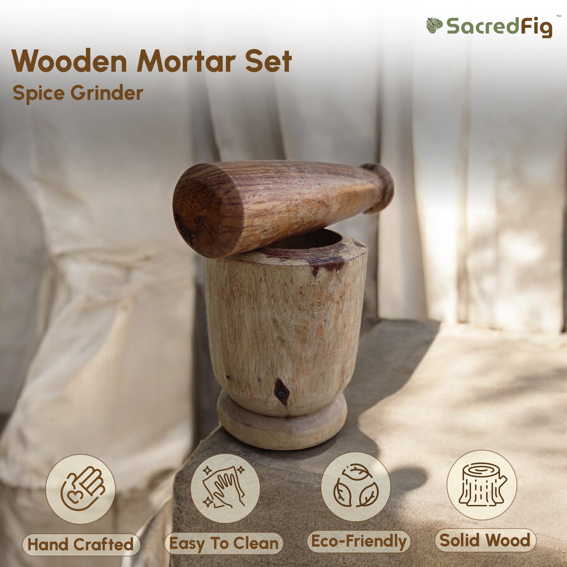 Enhance the traditional cooking experience with our SacredFig Plain Wooden Mortar, perfect for grinding spices, herbs, and nuts. The plain design adds an appealing touch to your kitchen countertop. Available in two sizes, the comfortable pestle and sturdy base of the mortar ensure a seamless grinding process. Sometimes plain is better!