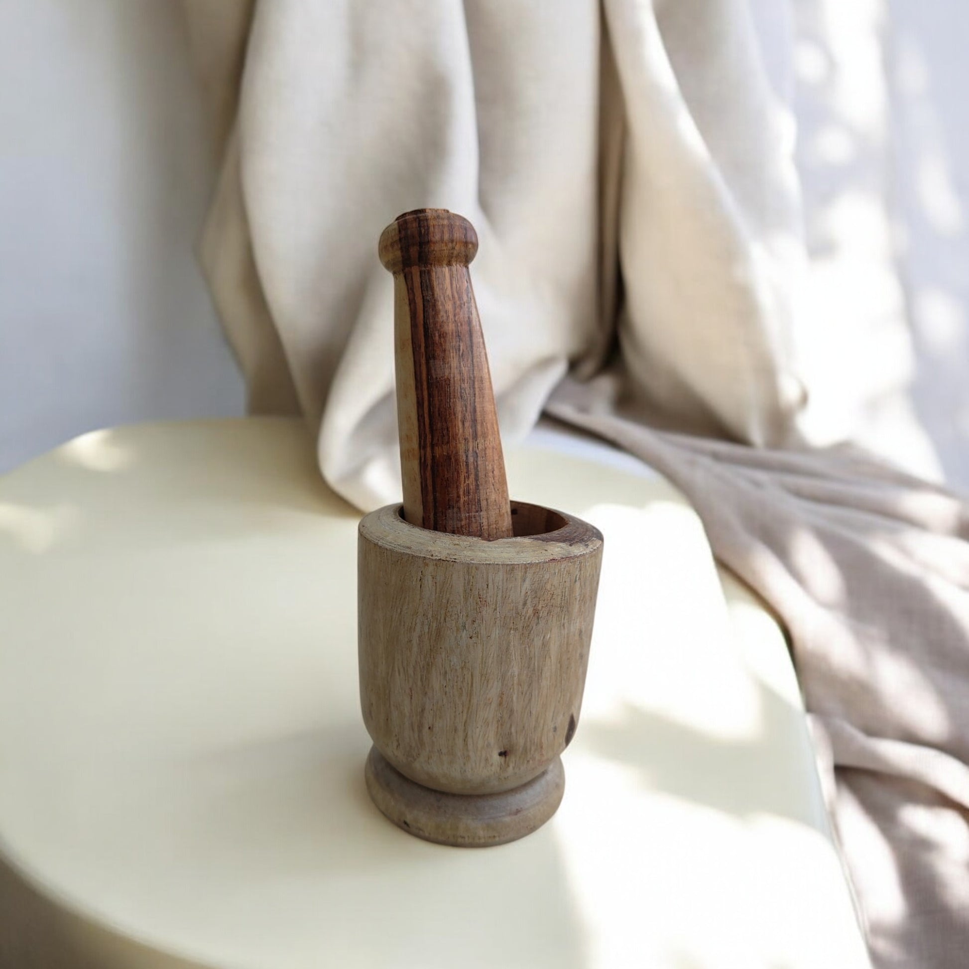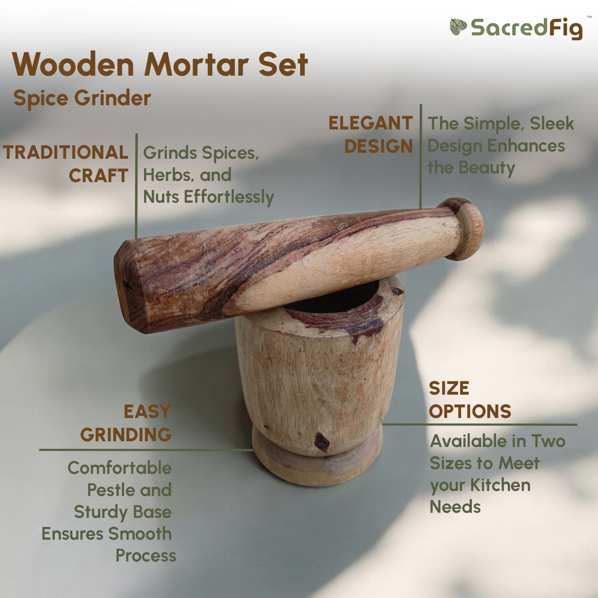SacredFig Plain Wooden Mortar| Okhli set Plain| Masala Grinder|S,M Sizes