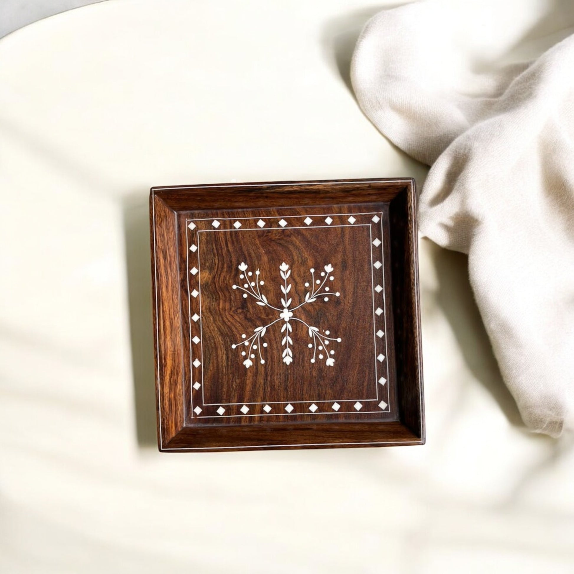 Wooden Inlaid Tray for Decor & Serving | Premium Decor by SacredFig | S, M sizes