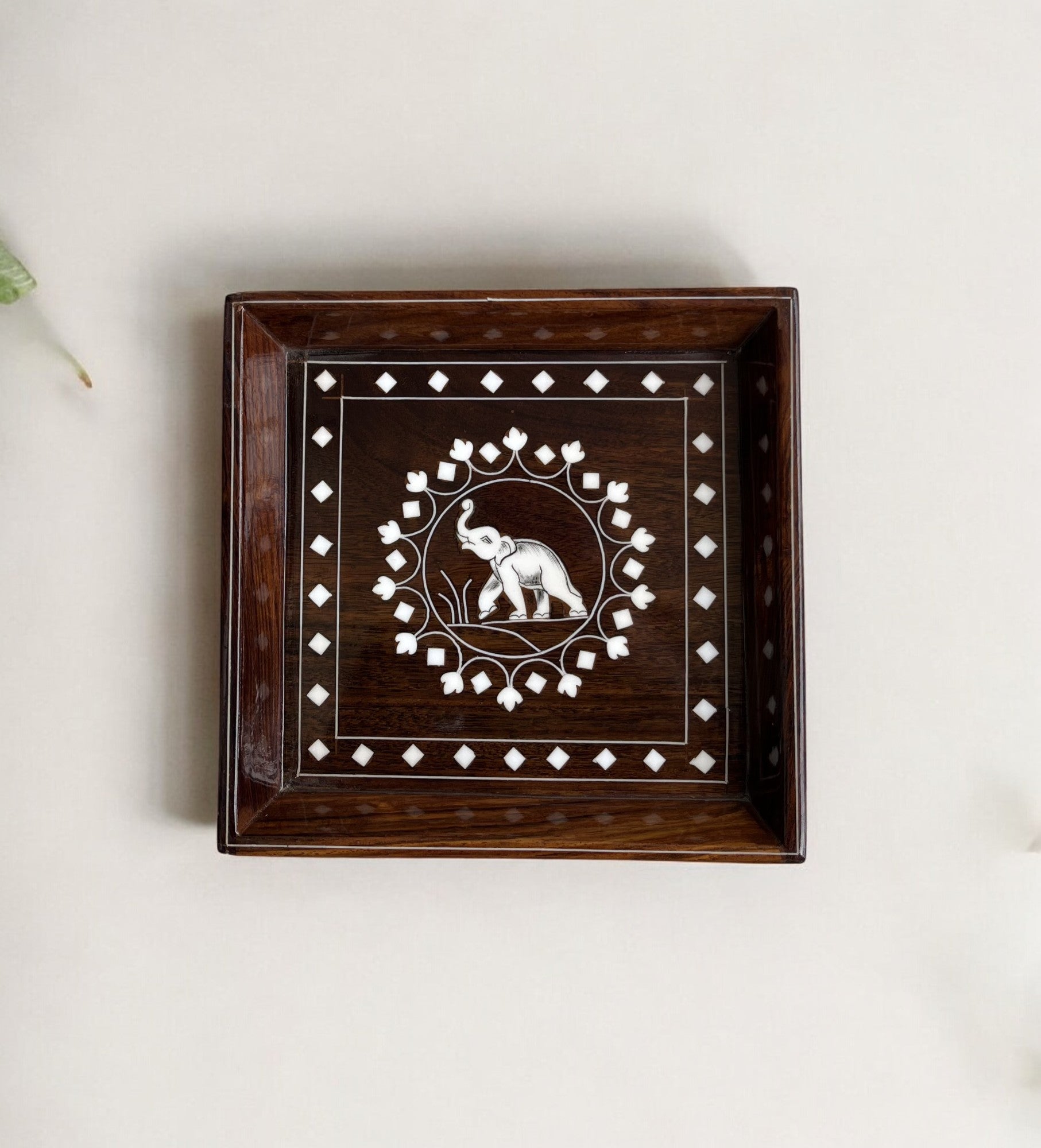 Wooden Tray for Decor & Serving | Premium Decor Floral Pattern with regal elephant motif | S, M sizes